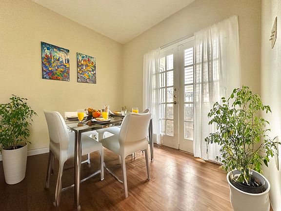 Looking for a great 2 bed, 2 bath near campus? This apartment has everything you need. The living room and bedrooms feature wood floors, and French doors lead out to your own patio space - perfect for adding some plants or setting up a morning coffee spot. You'll love how bright it is thanks to the big windows throughout, plus there's a peaceful courtyard in the complex. The kitchen has clean tile flooring and opens to a nice dining area. No need to fight for parking - you get 2 spots included, plus your own washer and dryer in the unit. Campus is just a quick walk away. Ready to see it? Give us a call to take a look!