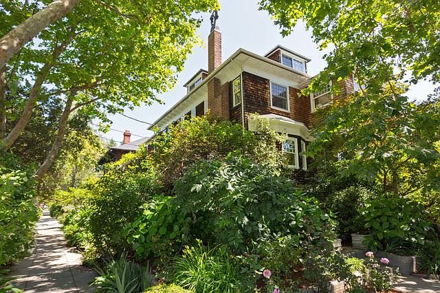 Warm & gracious brown shingle with updated kitchen/family room opening to sunny deck. 3 stories plus basement rec room! Exceptional cul de sac 2 blocks from College Ave! 5BR with many plus rooms! Lush landscaping in the heart of Elmwood!