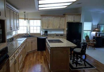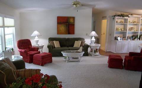 REDUCED! This one has it all. Very open floor plan. Light and bright. New windows. Wood flooring. Textured walls. Large living room open to dining area. Lovely sitting area with built in cabinet.The new island kitchen is a chef's dream with beautiful wood cabinets, crown molding, upgraded appliances, and plenty of counter space. A great enclosed veranda room over looks the pond and the club house. Two guest rooms plus a large master suite. The large master bath has lots of storage, and a large shower. The two car garage also has a golf cart garage. The cul-de-sac street gives this home privacy. All this in a gated active adult community with two championship golf courses with many amenities. THIS HOME IS A MUST SEE! Seller will consider owner financing.
