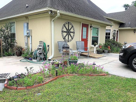 - Exterior Features: Barn/Stalls, Covered Porch, Slab, Patio, Outdoor Lights, Covered Patio, 1-5 Stalls, Gutters/Downspouts