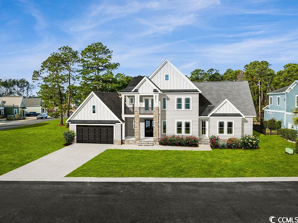 Welcome to this stunning home under construction in Waterbridge with a complete in-law/guest apartment. This is an "as is" sale. Situated within walking distance of all amenities the community has to offer. Some of the exterior and interior photos have been virtually rendered to show a finished look. The first story features an open floor plan, an office off the foyer (which could be used as a 6th bedroom if needed) full bath off foyer, and a full in-law/guest apartment with separate entrance, complete with two bedrooms, a full bath and powder room, kitchen, living and dining area, laundry as well as an outdoor patio. The second story boasts a generously sized master suite, two additional bedrooms with a jack and jill bath, a second laundry room and a balcony overlooking the beautiful open green space and a view of the lake. This home also features an enormous porch off the living area, slated to be screened, which is perfect for both an outdoor sitting and dining area for any entertainment needs.