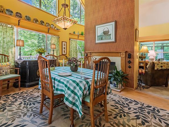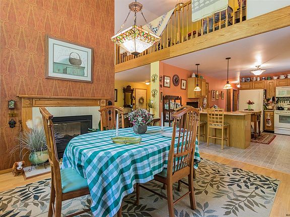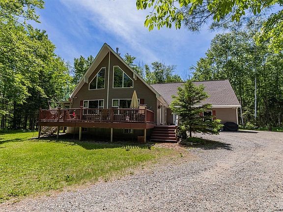 This well maintained home is situated on over 4 acres of land in the Village of Speculator, in the heart of the Adirondack Mountains. The attached garage can hold 2 cars or all of your toys! Double sided fireplace creates ambiance in both the living room and dining room. Huge windows flood the home with natural light. High ceilings and an open loft add to the atmosphere this property offers. Sunroom and deck give plenty of opportunity to enjoy the outdoors. Bonus space upstairs plumbed for future bathroom. Cozy one bedroom year round rental cabin is decorated in an "ADK" style and provides income potential. It is currently priced at $125.00 per night/$650.00 per week. Lake rights across the road gives opportunity to access Lake Pleasant with no HOA.