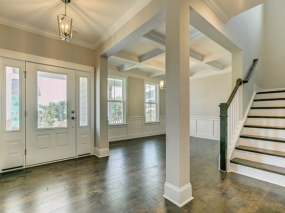 The Hayward is the perfect mix of elegance and functionality. This open concept creates an open and inviting feeling that flows from the kitchen through the family room. The two-story layout includes a first floor owner's suite and an expansive second story that features three bedrooms (one of which is its own private suite), two baths, and an over-sized bonus room. Bedrooms two and three both include walk-in closets and have access to a full bath that contains dual vanity sinks with granite countertops and tile flooring. The upstairs guest suite includes a huge walk-in closet and a private bath. The formal dining room contains Craftsman molding details with the coffered ceiling and wainscoting style trim. Wide planked hardwood floors start in the front entry of the home and run throughout the main living areas. The chefs kitchen features a gourmet layout with a gas cooktop, double wall ovens, and a large stainless steel under-mount single sink. Bluetooth connect through the included music port while cooking, and have friends and family gather around the flat center island for casual seating. Designer finishes include stone gray staggered height cabinets, quartz countertops, tile backsplash, under-cabinet lights, and a huge walk-in pantry. The kitchen overlooks the family room, which includes a corner gas fireplace and access to the back covered porch. The first floor master is accented by a large tray ceiling and includes an expansive walk-in closet and an en-suite ba...