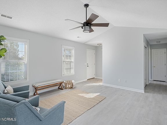This open concept home is perfectly located in the desirable Whitney Pines community and conveniently located 16 minutes to UNCW, 13 minutes to Mayfair Towne Center & 16 minutes to ILM. This charmer boasts vaulted ceilings, fresh paint, recently replaced LVP flooring & carpet, split floorplan, garage and more! This corner lot home has a large fenced in backyard and gate which makes it accessible to store your boat & trailer. Welcome home.