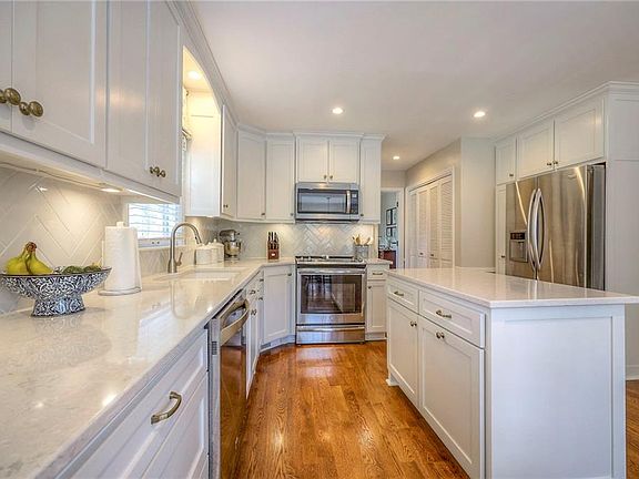 This beautiful home, located in the highly sought-after Blue Valley North school district, sits in a vibrant and friendly neighborhood. Meticulously maintained and updated, this residence boasts a serene brick patio, perfect for relaxing or entertaining. The heart of the home is the gorgeous chef's kitchen, equipped with stainless steel appliances that will remain with the home, complemented by elegant quartz countertops. Natural light floods through the windows, creating a warm and inviting atmosphere. Stunning hardwood floors extend throughout much of the main level. The family room features a charming brick fireplace, beautiful built-ins and a wet-bar. The master bathroom offers an updated spa-like retreat, designed for ultimate relaxation. Each of the spacious bedrooms are equipped with ceiling fans and tasteful window coverings. The finished lower level expands your living space with a wet bar and a full bathroom, ideal for gatherings or additional living quarters. The side entry garage adds a touch of privacy and convenience and to top it all off, the washer and dryer are included. Everything has been lovingly done on this home and it is ready for you to make it your own.