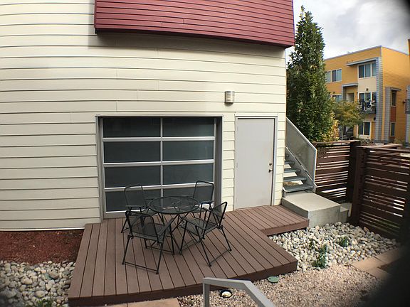 Modern 2 bed-3 bath row home built in 2014 with 2 car garage and unfinished basement. Super bright and airy with lots of windows (due to being the end unit) and out door spaces. Each bedroom has it's own private bathroom. The master has a full 5 piece bath and tons of light. Walking distance to Regis University and light rail. Southern facing front door with spacious porch is ideal for sharing a drink with neighbors. Or go lounge in the backyard patio/deck to enjoy a little barbecue or dinner party. Please contact Rob set up appt to view the property. Owner pays water & trash. Renters pay electric, gas and internet. Small dogs are OK but costs an extra $50 / month. No smoking inside unit. Gross income qualification is 2.5 times monthly rent. First month rent, last month rent and $2000 security/damage deposit upon signing lease.