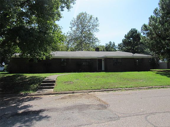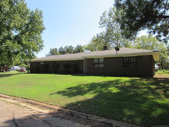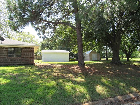 Brick Home on 2 large beautiful lots with a variety of mature tree's. Home has 3 bedrooms, 2 baths, 2 car garage with partial conversion to closet/storage. Large family room with fireplace and formal dining. Nice kitchen that opens into family room. There are 2 detached buildings that are approx. 24' X 12' and 22' X 14' for shop/storage. Lots are 190' X 100' each. All improvements are on one lot and second lot could be sold for nice building lot. Close to Choctaw Casino, Durant, and Texas.