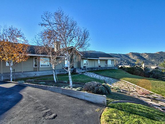 High on the hill with spectacular views of the world below. You are bound to feel captivated by the magnificent views from this ranch home. It features high ceilings,panoramic windows, 4,048 sf. living room, dining room, family room, sunny kitchen with tile counter tops, 3 bedrooms, 3.5 baths, 3 car garage and separate granny unit with 1,039 sf is included in square footage.with living room, dining area, kitchen with granite counter tops, 2 car garage, guest bedroom with bath, decks, patio and 3.5 acres