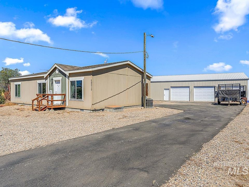 This charming 3 bed, 2 bath, 1,296 sq ft home was built in 2016. Situated on a sprawling half-acre lot, with endless possibilities! You'll love the impressive ~3,000 sq ft shop, complete with three bays and a separate access door. Equipped with electricity and a water softener, it's ready to accommodate all your hobbies and projects. Office space in shop is heated & cooled w/ sink. And if you wanted to add a full bathroom, there's ample space to make it happen! Outside, soak in the tranquility as you listen to the birds serenade you while sipping coffee or indulging in a good book on the back deck. As the sun sets, bask in the beauty of your own piece of paradise. Don't miss out on this rare opportunity to make your home in Wilder, where every day feels like a vacation.