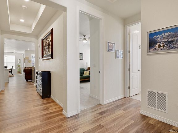 Welcome to this stunning 3 bed 2 bath Lennar ranch style home that has tasteful on trend modern finishes providing the perfect blend of comfort and style. Upon entering, you'll be greeted with luxury vinyl flooring that adds both durability and elegance to the space. The open concept living area with a gas log fireplace focal point is the perfect space for entertaining guests or enjoying family time, and the updated kitchen boasts beautiful granite counters and top-of-the-line stainless steel appliances that any home chef would appreciate. The generously sized pantry is also at hand. The primary bedroom is a private oasis featuring a spacious layout with ample natural light and a beautiful en-suite bathroom complete with dual sinks, a walk-in shower and huge walk in closet. The additional two bedrooms are generously sized and perfect for your lifestyle, home office or guests. This home is perfect for those who appreciate a low-maintenance lifestyle, as the luxury vinyl flooring and updated finishes require minimal upkeep. A convenient mudroom off of the garage and a separate laundry room with a beautiful pedestal washer dryer set is tucked away. You'll love spending time in the backyard, which offers a private retreat complete with a covered porch area perfect for outdoor dining or relaxation. Spring will be a lovely adventure as there are flowering plants and drip lines for low maintenance. A full open basement is ready for your creativity and finishes. Located in a desirable neighborhood with access to the Blackstone Country Club, this home is within close proximity to schools, parks, and shopping centers, making it the perfect place to call home. And did I mention that it is in the Cherry Creek 5 school district? Don't miss out on the opportunity to make this stunning ranch model home yours!