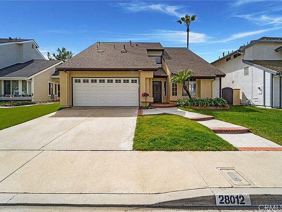 Beautiful two story home with lovely valley and city views from the large backyard! Great backyard lawn for your dogs! Home features upgraded kicthen with fresh painted cabinets and stainless steel appliances. New dishwasher as well. House has fresh paint and newer laminate floors downstairs. Three bedrooms upstairs and one downstairs bedroom has french doors and full bathroom access. Downstairs room can easily made into an office. Master bedroom has city views, 2 closets and dual bathroom sinks. Home had roof replaced four years ago. Both bathrooms upstairs have been upgraded recently. Central air system and house fan works great and replaced five years ago. Included with the sale are washer and dryer, stainless steel refrigerator in the kitchen, and lawn mower in the garage if needed. Low HOAS and Lake Mission Viejo access! The house is located where you can see the July 4th fireworks from Lake MV from your own backyard! Lovely quiet nice neighborhood a great place to raise a family! Fairly priced this will go fast.
