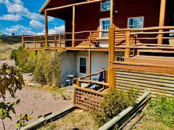 Beautifully crafted 4-bedroom, 2-bath True-Log Home with a rural charm and easy access to all that Hot Springs has to offer. Whether you are seeking a private sanctuary or a lucrative investment, this remarkable estate offers many possibilities with this 3.81 acre property. Log construction, with hand-crafted, custom-built elements, including wide steps that lead you to the front door, piers, railings and other unique trim pieces. This log home offers well maintained logs, with recently replaced steel roof (hail claim), new gutters and two new Mitsubishi heat pump/AC systems for summer comfort. In floor heat system. Private Well, Private Septic System. The home is both beautiful and functional. Main floor open concept living, dining kitchen area offers impressive vaulted ceiling, 2 bedrooms and bath. Upper-level loft area functions as a third bedroom. In addition to the main floor, the lower-level walkout includes a fully a king-sized bedroom, private bath, living space with kitchenette, laundry room, and its own outdoor patio and sitting area. This versatile space is ideal for guest suite, family room or for generating income. Property would be perfect for renting out on platforms such as Airbnb, TripAdvisor, or Booking.com. The property also includes a steel built outbuilding, currently used as a workshop/garage. Adjacent 35 acres available-MLS 85003.
