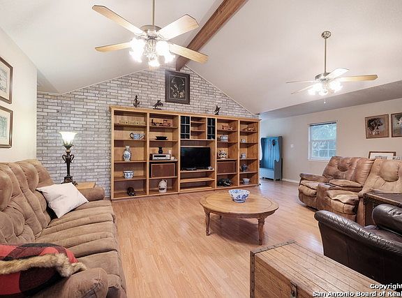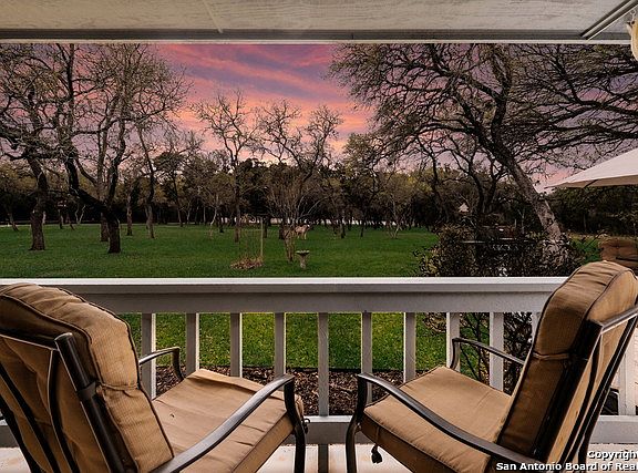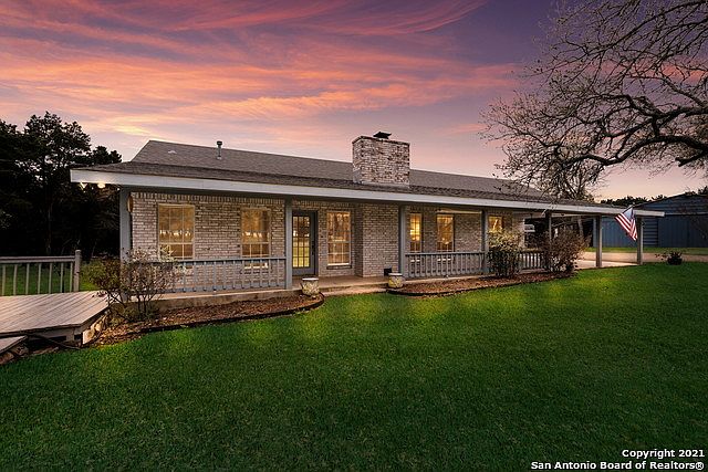 Step into this gorgeous Hill Country Ranch Style Home with a Front Porch, nestled in the desirable High Chaparral Community, to discover your retreat. Enjoy your days relaxing on the Front Porch and sipping a cup of coffee or having a BBQ on the front deck. This home's privacy is impressive, with several trees on the homesite and a private lot with just over 3 acres is hard to find. White Faux Wood Fence with a custom-built electric security gate welcomes you to your new home. Now let's walk inside and notice an open Kitchen with a Breakfast Bar and Stainless-Steel Appliances that looks into the living area with a Stone Fireplace. The Master Bedroom features a Cove Ceiling with Laminate Wood Floors, two 4 X 6 Closets, and tile Master Bath flooring. Enjoy the Family with a Vaulted Ceiling and a Brick Wall accent. Drive down your private asphalt winding drive into your little piece of tranquility. This Meckel Custom Home is only minutes away from Downtown Gruene, TX, and New Braunfels, TX homeowners enjoy all the city's convenience and living in the country. This home is well maintained, also included with a service plan and no HOA. The property also features a 42 X 30 Barn, two 8 X 10 Pony Stalls, with rubber mats and power to the barn.
