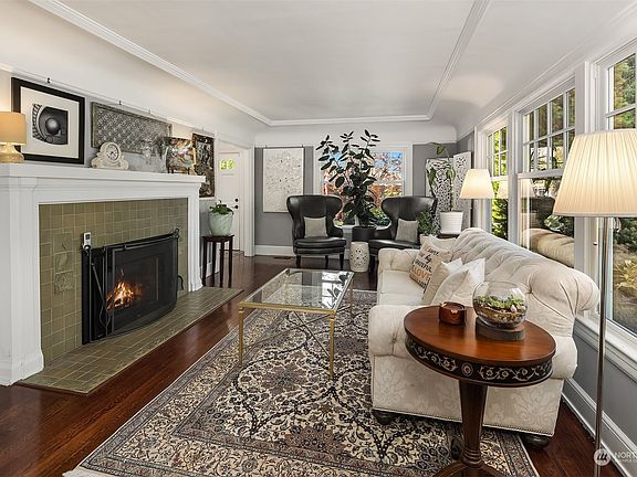Perched on a corner lot, this fully remodeled 1928 Mt. Baker Tudor charms. The sun-filled main level offers open living and dining spaces, coved ceilings, a gas fireplace with Pratt + Larson tiling, gleaming hardwood flooring and custom kitchen featuring Italian Carrara marble and professional-grade appliances. Connected to the bright, main-level primary bedroom is a beautifully-appointed dressing room. Other updates include a custom front porch, basement completion, new electrical, plumbing, sewer line, central heating and air conditioning, solar, tankless water heater, triple-pane windows, cedar fencing, and terraced hardscape with stamped concrete. Two car garage. Centrally located in Mt. Baker, steps to parks and Lake Washington.
