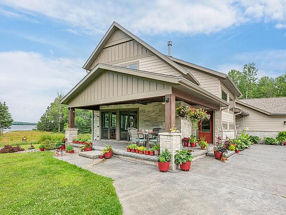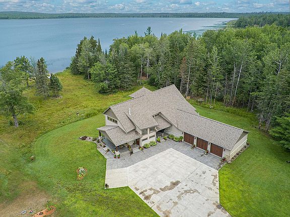 "ONE OF A KIND" is the best way to describe this unique Northwoods property!! A unique blend of new contemporary architecture blended in with a Northwoods Flair. The main home; built in 2017 consists of 2 bedroom, 2.5 baths built with a gourmet's kitchen, great views of the lake from nearly every room in the home. The main floor features an open concept living area, master bedroom suite, exercise room, pantry, half bath and a three season room. The second level consists of a large bedroom, full bath, loft area and an office with a private balcony. There is a 3 car heated attached garage. A three season 3 bedroom log cabin and two detached garages are also part of this complete package. The property is located on Columbus Lake, a 677 acre lake with no public access with 1340 feet of lake frontage and approx. 47 total acres. Rice Creek bisects the property. The acreage is a unique combination of high ground, wetlands and creek creating it's own ecosystem for a great variety of birds