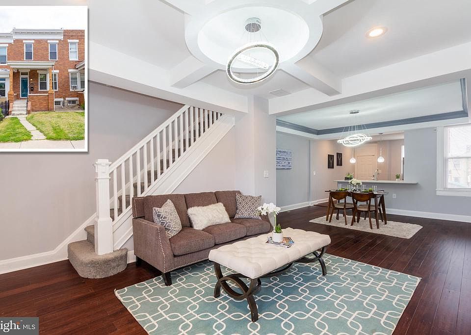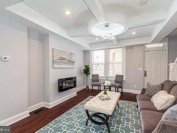 CUTTING EDGE PORCH FRONT RENOVATION WITH 3 FINISHED LEVELS & DESIGNER KITCHEN! Features include hardwood floors throughout the main level, open floor plan, spacious living room w/ coffered ceiling & fireplace, separate dining room w/ crown molding, contemporary light fixtures, gourmet kitchen w/ marble counters, ss appliances, & tile backsplash, upper level w/ 3 bedrooms & 1 full bath, fully finished basement w/ family room, 4th bedroom, & 2nd full bath, & a large fenced yard!
