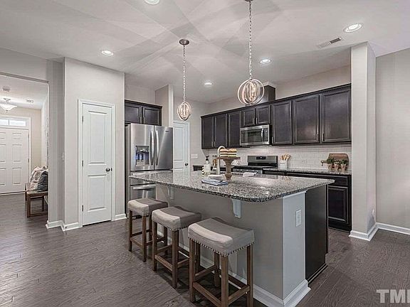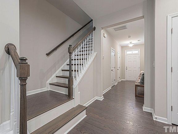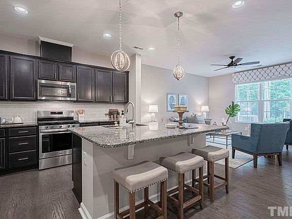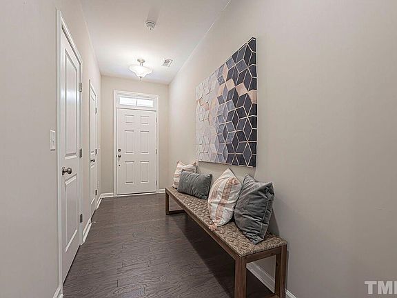 Better than NEW townhome w/updates galore located in the beautiful community, Sweetwater. 3 bed, 2.5 Bath. Added storage shelves in the garage. 3k in blinds throughout. Storm door, ring doorbell, and refrigerator stay! Screened porch and extended patio backs up to a private natural buffer full of mature trees. Quick access to 540 and 64 to get to anywhere in the Triangle. Sweetwater offers endless parks and amenities to give you the best of both worlds. Town center coming soon! No exterior maintenance!