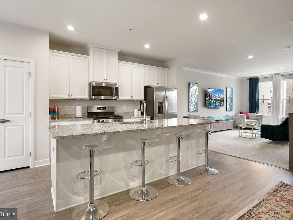 Close to Andrew's AFB, DC, and the Census Bureau. Stunning 4-level, 3 bedroom, 3.5 bathroom townhome. The first floor includes a 2 car garage, storage room, family room and half bath. Equipped with an open and bright kitchen, living room and dining room with a small deck on the 2nd floor. The third floor has 2 bedrooms perfect for a children and a laundry room. The master bedroom has a walk-in closet, double vanity and separate tub and shower. Finally, the fourth floor is open and can serve as an exercise/bonus room or 4th bedroom. It has it's own closet and full bath. In addition, this property has a room top terrace with deck tiles, faux grass and outdoor furniture. Don't wait to call this oasis your next home.