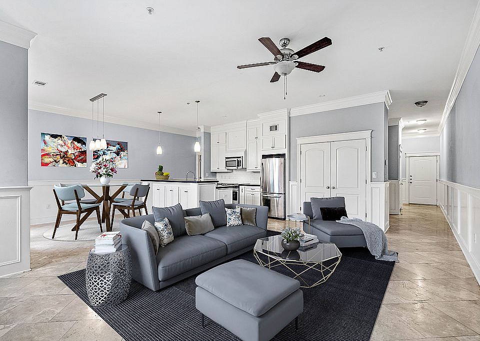 Come see this spacious one-bedroom condo, with a study large enough to be a second bedroom. This building is nestled in the perfect location in the heart of the Heights! You will notice high end finishes throughout - with stainless steel appliances, travertine floors, under-mount sinks, frameless shower door, laundry in unit, crown molding, elegant chair rail trim, 10" ceilings, custom cabinetry, and granite counters. The list of beautiful upgrades goes on and on! You'll love the built-in shelving and drawers in the large walk-in closet! The large patio off the dining/kitchen boasts beautiful views of the Heights neighborhood. Building amenities include a dog park, fitness center (2nd floor), rooftop terrace (4th floor) perfect for grilling and entertaining, shared party/club room (3rd floor), gated entry, and assigned parking. Ask about our virtual tour!!
