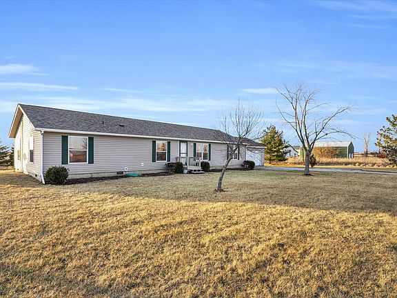 Welcome to your dream country ranch just West of Mahomet, positioned on the Champaign-Piatt Countyline. Experience rural living in close proximity to town, all while enjoying the benefits of Piatt County taxes. This exceptional ranch-style home sits on 2 acres, with the option to expand to 5 acres (Inquire for details). Step into an inviting open-concept layout with vaulted ceilings, seamlessly connecting the kitchen, dining area, and living space. The fully applianced kitchen boasts a pantry closet for added storage convenience, along with trendy oak cabinets.. The popular split floor plan ensures privacy, with the master suite thoughtfully separated from the other two bedrooms. The master offers vaulted ceilings and en-suite full bath. Built with quality in mind, the home features 2x6 exterior walls and R50 insulation in the ceiling, providing superior comfort and energy efficiency. The roof was replaced with architectural shingles in 2021, ensuring durability and modern appeal. The attached two-stall garage offers not only parking but also additional space for storage. Facing west, the back of the home invites you to take in the views of your expansive backyard, accompanied by endless western sunsets. Note: The original floorplan intended for 4 bedrooms, but it was adapted to 3 bedrooms to create a spacious great room open to the kitchen. The potential to revert to four bedrooms exists by adding one wall. Don't miss the opportunity to make this charming country retreat your own!