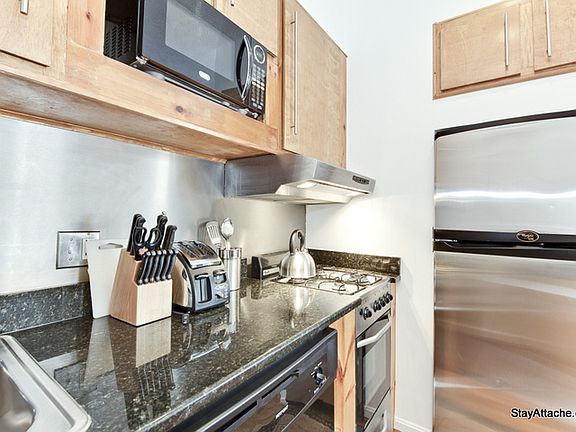 Available Jul 04, 2016. - Fully furnished, spacious, renovated studio condo on the main floor of a 2 story walk up building in the heart of the East Village in Georgetown. The property is located one block from the restaurants, shops and entertainment of M Street! A Trader Joe's Grocery Store is just a 7 minute walk. This studio has a divider separating the living room from the bedroom. The kitchen is stocked with all the tools needed for cooking. A full size bed is in the bedroom. This property includes central air conditioning and a private in unit washer/dryer. The Foggy Bottom Metro Station (blue and orange lines) is just 8 blocks. Walk Score: 97 (Walkers Paradise), Transportation Score: 73, Bike Score: 88. Please note: For stays shorter than 90 days there is a required 14.5% Washington, DC Hotel Tax due in addition to the rental amount.