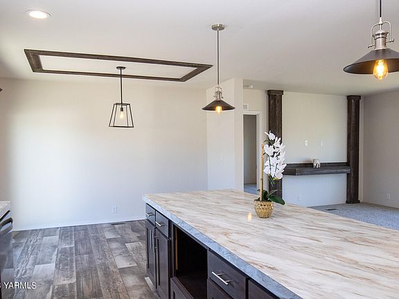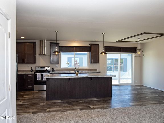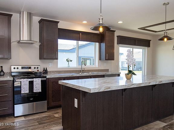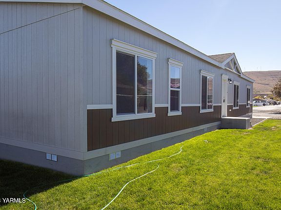 Welcome to Meadowlands Estates, a serene, all-ages manufactured home park in Union Gap. This beautiful home is a 2022 model with striking features throughout. Inside, dark wood finishes compliment the brand new stainless steel appliances, generous pantry space, and a large kitchen island to make cooking a breeze. The primary bedroom is large and welcoming with brand new carpeting and white trim. The primary ensuite bathroom has double sinks, shower stall, linen closet and a large walk-in closet. The home features 2 more bedrooms, another bathroom in the hallway, a dedicated mudroom/laundry room, and an office space with built-in storage and desk area. Outside, the lot has green grass, a storage shed, and plenty of off-street parking. This community is located near the Valley mall, Costco, restaurants, rivers, great outdoor activities and close to the Union Gap BMX track. Lot rent for this home is $760 with a special offer currently $200 off Lot Rent for 12 months. Optional storage shed for $50/mo. There is so much to love about Meadowlands Estates!