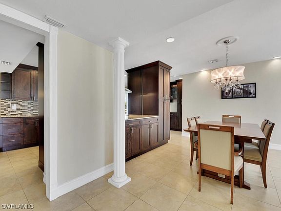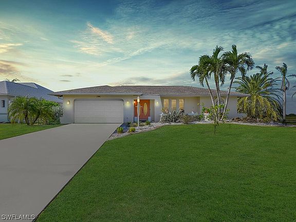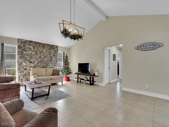 PRICE REDUCED!!! LOCATION, LOCATION, LOCATION! Situated just 5 minutes from the Gulf of Mexico with some of the best boating, fishing, and shelling there is in Southwest Florida. ***This is direct gulf access with no bridges:)*** At almost 1900 sqft of living area on an oversized lot, this 3 bedroom & 2 full bath is well laid out. The open floor plan features ceramic tile flooring throughout, vaulted ceilings and a gorgeous kitchen. Kitchen features cherry cabinetry and granite countertops with a glass tile backsplash that is eye catching. All bedrooms are of good size and with good natural light. Primary bathroom features 2 sinks on a large granite vanity with a separate walk in shower. The other 2 bedrooms offer privacy being on the other side. 2nd bath is accessible directly from pool, so no wet feet tracking through the house:) Huge lanai and saltwater pool area for entertaining or just catching those sunsets:) Or you could hop on your boat from the backyard, a 10,000# boat lift is ready for you! This home ideally located near great shopping , entertainment, schools and parks:)