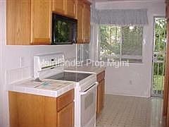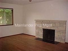 Terrific split level Mt. Tabor home in great neighborhood. Tile floors in the entry. A few steps up to the spacious living room with hardwood floor and wood-burning fireplace. Dining room with hardwood as well. Kitchen has been updated with tile counters, ceramic cooktop, microwave. Sunny nook with access to backyard. The master bedroom with hardwood floor is located on the main floor. Upper bath features a double vanity, tile floor and counter. This bath connects with the master bedroom with a second vanity area and shower. The second hardwood bedroom is just down the hall. The lower level has a large family room with fireplace and new carpet, the 3rd bedroom and a half bath. There is a sliding door from the bedroom to the back patio. Lots of storage. Laundry room has utility sink and access door to back yard and garage. Single garage with storage cabinets. Lease through March 31, 2010 or longer lease possible.