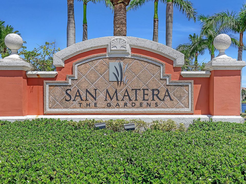 Ground floor, NO STAIRS, newly renovated, 2 beds - 2 baths condominium, in one of the best locations in P.B.Gardens! Resort style living In the gated community of San Matera, walking distance to the Mall, and the Downtown Gardens. Close also to the best shops and restaurants, the beautiful local beaches and golf courses including PGA National. Minutes from I-95, the Turnpike and a short 15 minutes drive to WPB International Airport. Proximity to the Palm Beach Gardens Hospital, and schools. Bright and spacious, newly updated condo with a screened patio accessible from the living room and the master bedroom. New granite countertops in the kitchen and both bathrooms, stainless steel appliances, laminate floors throughout the condo, freshly painted. Brand new AC, private storage room for the hurricane shutters. First class community amenities with a large swimming pool, spa, fitness center and racquet ball court, club room and library, tennis and pickleball courts. Playground and barbequing area. No pet restrictions and no rent out limitations. This will go fast!