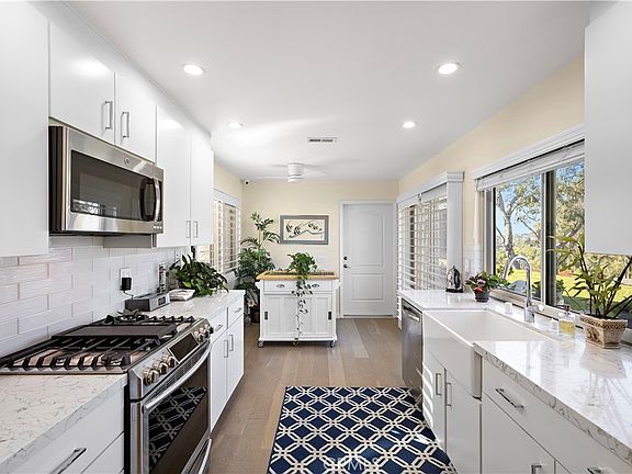 Perched in a serene community with breathtaking panoramic city lights and mountain views, this impeccably maintained home is the true definition of pride of ownership. Step inside “Mrs. Clean’s” residence and experience a thoughtfully updated Carmen floorplan featuring 2 bedrooms, 2 bathrooms, and 1,251 square feet of refined living space. The remodeled kitchen is a showpiece, boasting new custom cabinetry, gleaming quartz countertops, and stainless-steel appliances—perfect for both everyday living and entertaining. The spacious living room features vaulted ceilings and a beautifully redesigned fireplace, creating a warm and inviting atmosphere. Throughout the home, you’ll find newer luxury vinyl flooring, fresh paint, LED recessed lighting, plantation shutters, and dual-pane windows and sliders, all adding to its bright, modern feel. Both bathrooms have been tastefully remodeled with new walk-in showers, vanities, and fixtures, exuding spa-like comfort. Enjoy year-round comfort with a newer HVAC system, complete with updated air ducts and thermostat, as well as a newer roof, gutters, and hot water heater. The epoxy-finished garage floors and built-in storage cabinets provide convenience and functionality, while the Life Source whole-house water purification system ensures pure, clean water throughout. Step out to your secluded back patio—an ideal spot to relax and take in the sparkling city lights that twinkle below. Located within a beautifully landscaped 55+ community spread across 484 acres of rolling hills and mature trees, residents enjoy resort-style amenities including two recreation centers, pickleball and tennis courts, pools, spas, lawn bowling, a fitness room, billiards, clubhouse, and more. The HOA also provides front yard maintenance, exterior painting, trash service, and professional management, allowing you to truly enjoy a low-maintenance lifestyle. 28021 Calle Casal isn’t just a home—it’s a lifestyle of comfort, quality, and tranquility. Come see for yourself why this exceptional property is truly a beautiful place to call home.