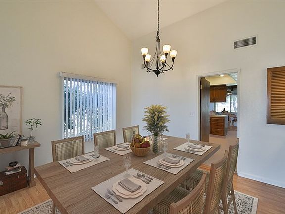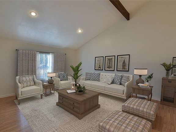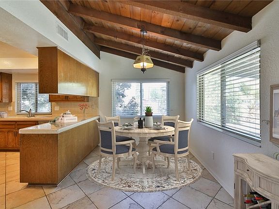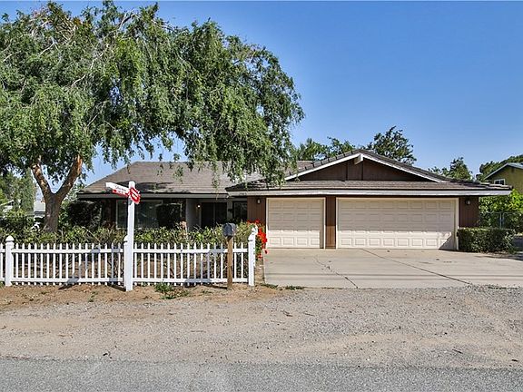 ~Text RNC to 59559 for photos, details, & to schedule a showing ~ Move in ready single story home located on 1/2 acre corner lot. The charming white picket fence invites you into this ranch style home that greets you at the entry to vaulted ceilings & rustic wood beams that accent the architecture of this home. The large formal living & dining rooms are light & bright w/recessed lighting & wood-like flooring. The kitchen is located just off the dining room & offers lots of counter & cabinet space, as well as recessed lights, stainless steel dishwasher, gas range. The kitchen opens to a spacious dining area that flows into the family room featuring beamed ceilings, rock faced fireplace w/custom mantle pieces & unique wet bar w/sink & shutter doors that open to the dining room, perfect for hosting. The master bedroom again features the vaulted ceilings making this room feel grand along w/the double door entry & the large master bathroom that features dual sinks & separate vanity + large walk in closet w/mirrored doors & privacy toilet & shower. The remaining 2 bedrooms are equally spacious w/large closets & wood like flooring & share the hall bathroom. The backyard is beautiful w/synthetic grass, large patio space & is surrounded by beautiful fruit trees that offer ample shade. The property features irrigation for the many fruit trees, wide gate for easy storage of toys or an RV & the land allows up to 5 horses. Home also has paid solar. So many options w/this amazing property.