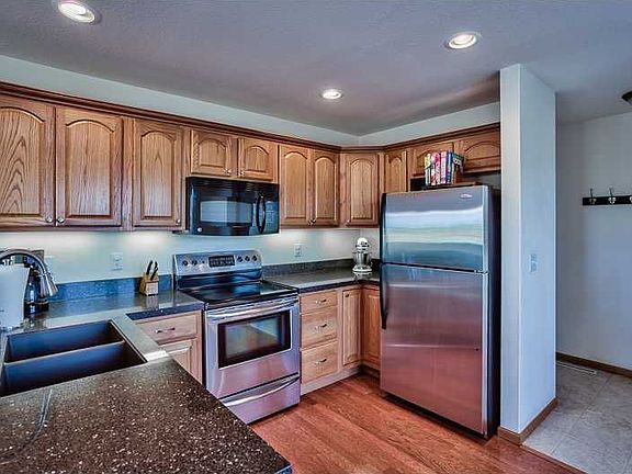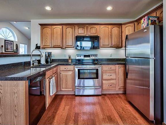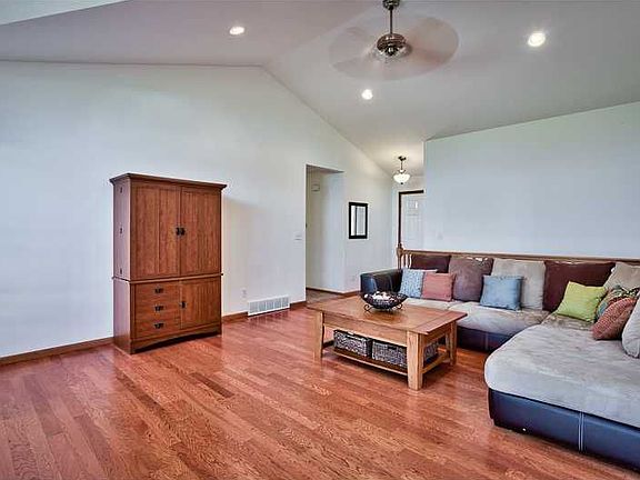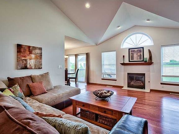 Over 1700 finished square feet, granite wrapped kitchen counter with raised breakfast bar & upgraded under mount sink. Hardwood laminate & ceramic tile flooring, designer & vaulted ceilings with a tray ceiling in the master, gas fireplace, nickel lighting & circle top window. Finished lower level with egress window. 10x12 deck with stairs to fenced rear yard & block retaining wall.