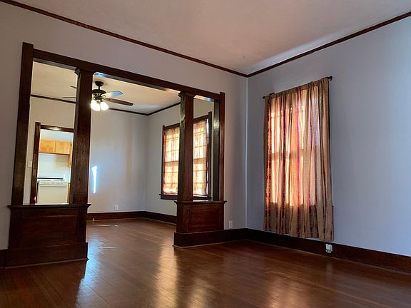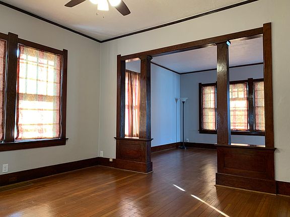 Beautiful original hardwood Excellent location Attached garage Fenced yard for your dog Washer and dryer included No smoking, no cats. Dogs ok if approved. Tenant pays all utilities. Credit check required for application.