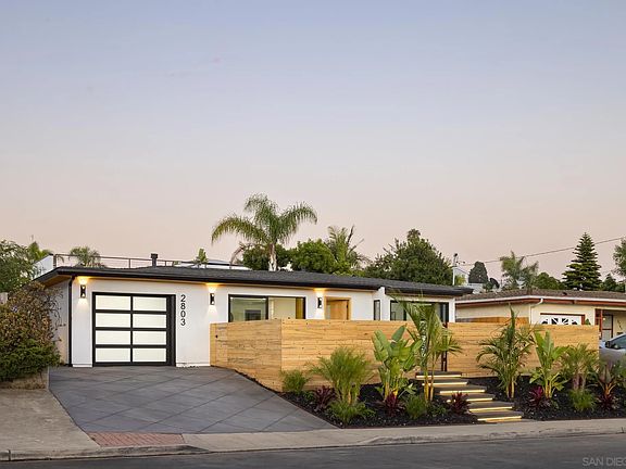 This fully permitted smart home was almost entirely reconstructed from the ground up! top of the line finishes including European Oak flooring, a chef’s kitchen with custom hand built White Oak cabinetry, Bosch appliance suite and a 12 ft island topped with Brazilian White Macaubas Quartzite counters. Open format living area crowned with an Emerald Quartzite slabbed fireplace. Luxurious bathrooms with floating vanities, wrapped in imported Italian Carrara Marble. Top-tier windows and a 12 ft pocket door system for harmonious indoor/outdoor SoCal living. Organic modern design against a tropical backdrop, featuring Bermuda grass lawns, Hibiscus flowers and King Palms. The backyard oasis features a 400 sq ft outdoor kitchen/bar with party lighting, 85" 4K tv, firepit area with integrated Sonos audio, and a 330 sq ft steel I-beam constructed roof deck with a 6-person saltwater spa, in perfect view of SeaWorld fireworks shows and panoramic Mission Bay and Ocean views. Expansive 6,500 sq/ft lot with shovel-ready, grandfathered 1,700 sq ft ADU/JADU combo which can no longer be attained with new ADU regulations, transforming this property into a 3,450 sq/ft, 3-unit estate with panoramic views from nearly three stories above the street. Voice/phone/hub controlled Echo Hub full smart home automation suite controls the unrivaled custom lighting package, audio/video, climate, CCTV, doors, fire features, appliances and more! A true state-of-the art entertainer's dream home.
