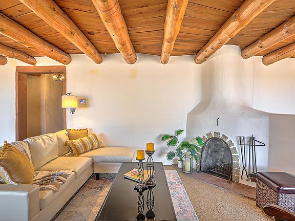 Special opportunity to own this charming adobe home by Leon Watson in the private Los Altos Enclave. Situated on a large half acre+ lot on the bluff, it offers private Southwest atmosphere and living. Home features 2200 sf with 3 or 4 bedrooms, 2 baths, an office and a 2 car carport w/ storage. Stunning wood beamed ceilings with vigas, a true kiva fireplace, and picture windows to add warmth and charm. There is a large recreation room/bedroom/family room just up from the kitchen, a private master suite with its own bath, a kiva fireplace separating the living room and dining room. There are covered patios along the front and back of the home for shady outdoor living. A lush shade tree shades the front. TPO roof, updated windows & heat/cool., A lot here, but you can still make it yours.