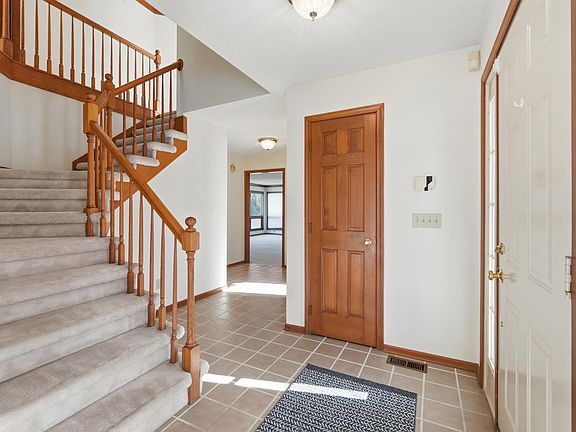 Situated on nearly a ½ acre corner lot, this home offers a great view of mature woods with privacy while having amenities nearby. Designed for both everyday functional living and entertaining, this residence offers multiple living spaces to spread out, including two inviting areas on the main level and a sprawling full finished basement perfect for recreation, work, or guests. The chef’s kitchen is standout, featuring abundant counter space, generous custom cabinetry, a pantry, and plenty of room for eat-in dining—ideal for those who love to cook or gather. A gas fireplace warms the Great Room, while the tray ceiling and chair rail in the Dining Room add an elegant touch. The oversized laundry room with utility sink and large mud room provide everyday convenience. Upstairs, you will find all bedrooms together, each spacious with sizable closets, offering comfort and function for every household member. Outdoor living shines with a two-tiered deck overlooking the private backyard—perfect for relaxing or entertaining. Additional highlights include a 3-car garage with service door, oversized driveway for extra parking, and community pool access. Peace of mind comes with updates: Roof (2015), HVAC/Air (2017) serviced by Masters, and a backup sump pump.