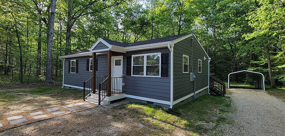 This home was a total remodel, torn down to the foundation and rebuilt. Remodels include all new electrical, plumbing and HVAC. This home includes new paint, flooring and new kitchen cabinets with quartz countertops. The home also has all new GE appliances including washer and dryer. Outside upgrades include new LP Smart siding, vinyl widows, GAF dimensional shingles, and new front porch with composite decking with aluminum railings. In the rear is a 10x12 wood deck, a 10x12 shed and metal carport. The well and septic system have also been maintained and inspected and are up to building code specifications.