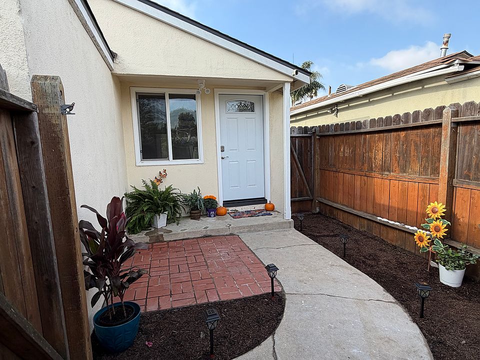 This charming, appropriately 950 sqft, fully renovated three-bedroom one-bath home with a private front patio and attached garage is situated in the desirable tree section near the beach, directly across from a beautiful greenbelt. The property includes a brand-new kitchen and bathroom, both equipped with quartz countertops. Natural light shines in the living area during the day. Additionally, the entire house features new eco-friendly, easy to clean, luxury vinyl flooring. A staircase off the back bedroom provides additional access to the fenced in private backyard. Two of the three bedrooms include walk-in closets. The garage includes washer/dryer hook-ups and storage. Tenants are responsible for utilities. * The outside of the property will be painted soon.