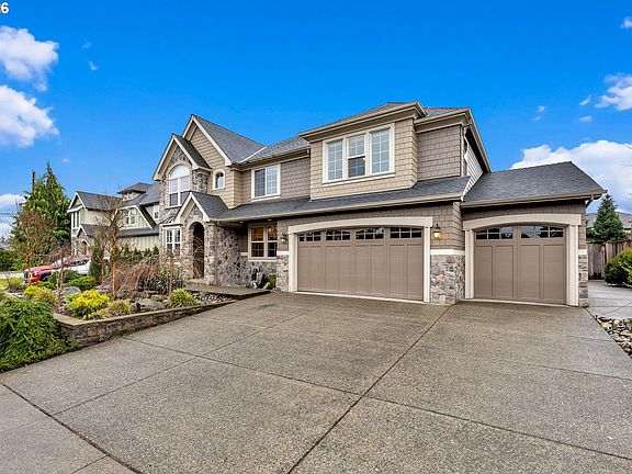 This Renaissance built home offers top quality upgrades throughout. It features 5 bedrooms plus den/office with closet, 3.1 bathrooms and a spacious 5 car garage. The main level includes den, formal dining room connected to a butler's pantry leading to chef's kitchen which features custom cabinets, quartz counters, SS Appliances, cooktop (plumbed for gas), built-in double oven and microwave. Kitchen opens to nook and great room with gas fireplace and built-ins. The upper level features primary bedroom suite with walk-in closet, jet tub, walk-in tile shower, dual vanity. 2nd bedroom ensuite with private full bathroom. 3 additional bedrooms, full bathroom with double vanity, built-in workstation and laundry room round out the upper level. Tons of outdoor entertaining space in the fully fenced and private backyard with covered and extended patios, fire-pit and sport court area. Conveniently located on a cul-de-sac next to a park and just minutes to I-5/I-205, shopping, medical facilities, WSU Vancouver campus. Ridgefield School District.
