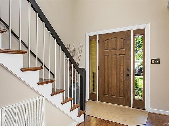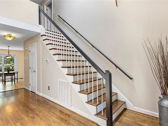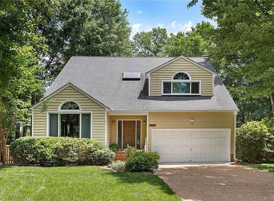 Lovely and well maintained home that features many upgrades. The vaulted foyer is bathed in natural light from a skylight and features dark hardwood floors. A sunken living room also has hardwood floors, a large palladian window and flows into a hardwood floored dining room, also with a bay window and tray ceiling. The updated kitchen features white cabinets, access to the large ground level deck, granite countertops and a center island. There are two pantry closets in the kitchen. A great room adjoins the kitchen and features hardwood floors, gas (propane) fireplace and another set of doors accessing the deck and fenced in yard. The half bath downstairs features a marble vanity and tile floor. The two car garage has been converted into a carpeted recreation room, with two closets and built in storage cabinets. The master bedroom features a vaulted cathedral ceiling, large palladian window, a walk in closet and a standard closet. The master bath has been recently renovated with tile floor, large double vanity with storage, large tub and a glass framed shower. Newer vinyl windows and doors, matching utility shed, oversized deck and lawn irrigation system and many other updates.