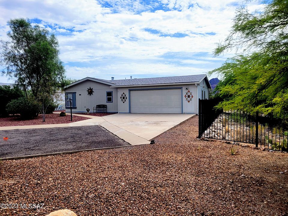 Beautiful Home located on a huge private enclosed lot that borders Green space. Great scenic mountain views. 55+ neighborhood. Low HOA. Double sided Fireplace separates two different living spaces. Vaulted ceilings, lighted decorative shelving. Kitchen has island, Banquette seating and plenty of storage. All bedrooms and entry have walk-in closets. Primary Bedroom has nice bay windows. Primary bath with Dual Vanity and step in shower. Oversized 2+ GARAGE with built in shelving. Laundry Room with Washer and Dryer included. Screened in Arizona Room perfect place to sit and have morning coffee.