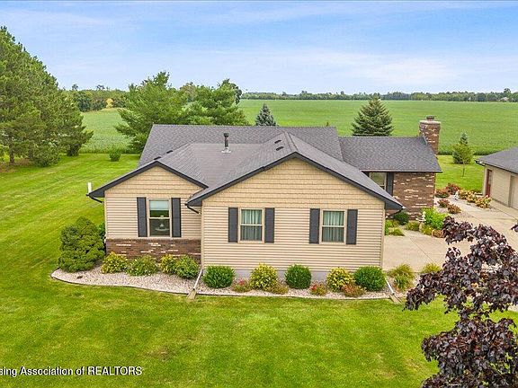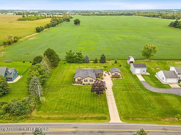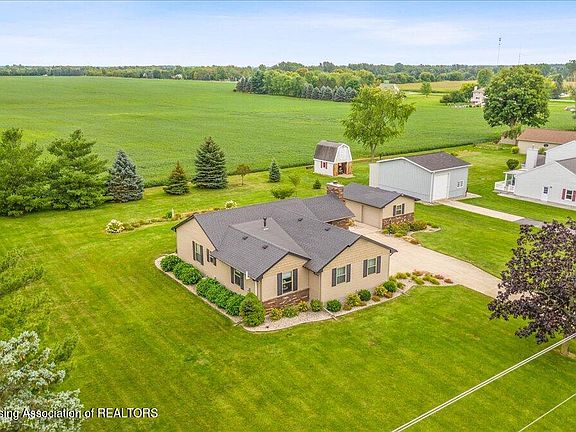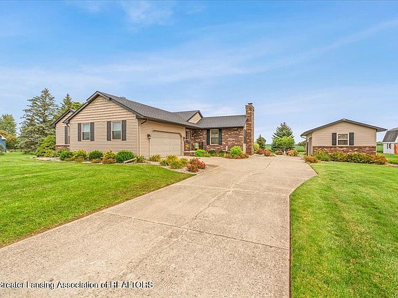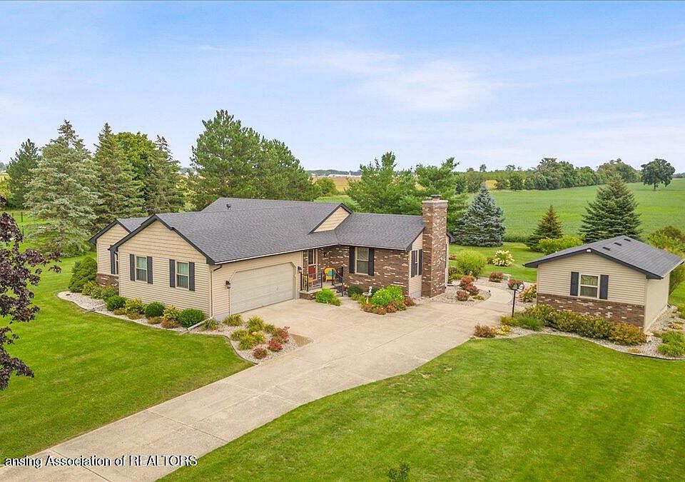 Incredible opportunity to own this meticulously maintained ranch home on over an acre of property plus an outbuilding in a great location in the St. Johns School District! This home has many wonderful features including a spacious living room with a cozy brick fireplace and hearth and many windows allowing for a lot of natural light. The kitchen has been completely redone with newer cabinets, wood floors, tiled backsplash, quartz countertops, a beautiful island, and so much storage. The three season room is just off the kitchen with access to the outdoor deck and allows for beautiful views of the yard with many gorgeous landscape beds. First floor laundry offers convenience and has great storage. The bedrooms are very spacious, and the bathrooms nicely updated including the primary full bath with a tiled shower with a euro door. The half bath is also on the main level and has been updated with a newer vanity, toilet, lighting and freshly painted. The lower level is partially finished with room for additional bedrooms if desired. The outside is just as beautiful as the inside, with gorgeous landscaping and so much privacy! The attached 2+ car garage is also spacious as well as the detached 24x16 mini barn/garage that is wonderful for all the toys and storage! This home has been lovingly maintained over the years and most mechanicals and roof have been updated, call for your personal tour today!