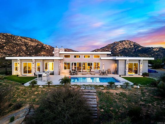 Welcome to 2803 Tucker Trail, Jamul - where tranquility meets modern living on a sprawling 19.95-acre estate. This remarkable mountain-top property, with unobstructed views, boasts a self-sustaining lifestyle with an array of features that define comfort, sustainability, and leisure. Water is abundant on this estate, with a 10,000-gallon tank equipped with a water filtration system ensuring a pristine supply. A well on the property replenishes an impressive 12 gallons per minute, eliminating the need for a water bill. Powering this oasis is a combination of underground electricity and solar energy, supported by a propane tank that requires filling only 1-2 times per year. Nature enthusiasts will appreciate the three hiking trails, providing a scenic exploration of the vast landscape. The property is sectioned into five fenced "parks," each offering its own unique charm and purpose. A secure entrance with a gate code access system adds an extra layer of privacy and security. The gate's automatic open/close timeframes allow for seamless control of access. The centerpiece of this estate is the main house, a contemporary masterpiece built in 2017. With an open-concept floor plan, high ceilings, and large windows, the home is naturally bright and offers stunning mountain views from every room. The entertainer's kitchen features an island with bar-style seating, stainless steel appliances, large walk-in pantry, and a fireplace in the living area. The main house comprises 4 bedrooms, 2.5 baths, spanning 3,078 square feet. The primary bedroom is a retreat with double doors opening to an ensuite bathroom, complete with a jacuzzi bathtub overlooking mountain vistas, and dog door connecting to a fenced in park. The property is designed for outdoor living, featuring a swimming pool with solar blanket to heat, outdoor fireplace, built-in BBQ with a refrigerator, and an oversized two-car garage equipped with a Siemens electric car charger for high-speed charging in 3-4 hours, ample of parking on the property with plenty of space for an RV. Front lawn is equipped with a timed irrigation system and the HVAC system operates in two zones, with fans installed in all rooms. Additionally, the property includes a versatile 2304 sqft barn that can be transformed into an ADU or customized to suit your imagination. The barn is equipped with solar panels, AC/heater, a half bathroom, and two storage/office rooms. Natural sunlight floods the space through a skylight that runs across the entire building, and garage doors on both ends enhance accessibility. Experience the epitome of luxury, sustainability, and flexibility at 2803 Tucker Trail – a property where every detail has been carefully curated for a lifestyle that harmonizes with nature and modern convenience. Points of interest: 94 Fwy / Campo Rd - 10 mins Steele Canyon Park - 15 mins Jamul Casino - 18 mins Target - 18 mins Rancho San Diego Towne Center - 18 mins Jamacha Point Shopping Center - 18 mins School System: Jamul-Dulzura Union School District & Grossmont Union High School District Jamul Primary School - 8 mins Jamul Intermediate School - 10 mins Steele Canyon High School - 15 mins