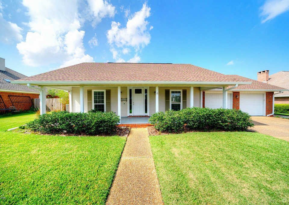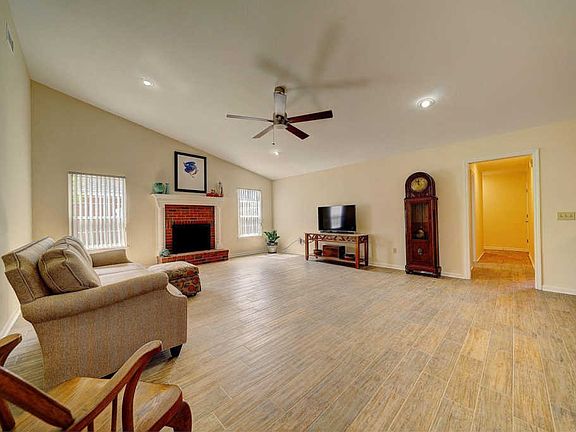 Centrally located 4 bed, 2 bath home with an office in the peaceful Forest Park neighborhood. This home greets you with a well-manicured landscape, a covered front porch and a welcoming foyer. The large foyer leads to the office, formal dining room and the main living area of the home. The open living room, dining area and kitchen floor plan offers a grand space to host family and friends without missing a beat. The living room features a brick fireplace, vaulted ceilings and built-in storage. The kitchen is equipped with plenty of counter space and cabinets, white appliances and a breakfast bar. Off the main living area is a large den, perfect for unwinding and relaxing. This home features a split bedroom floor plan with the master suite