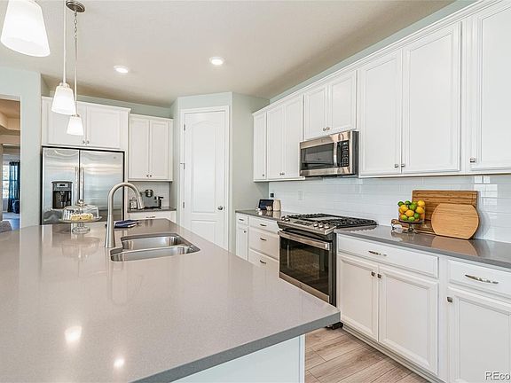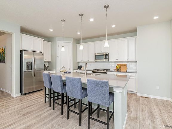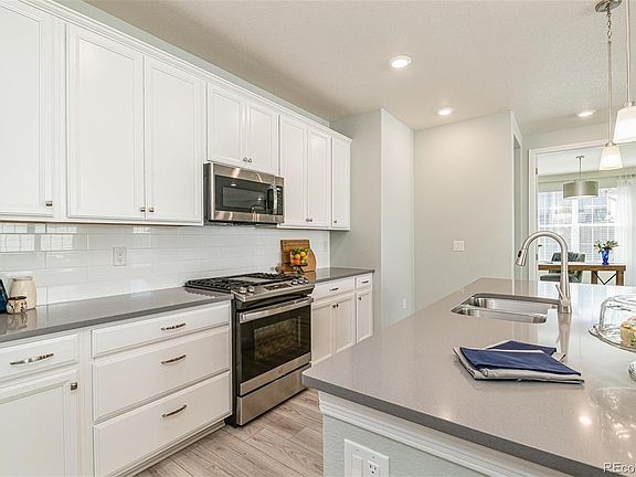 Welcome to Blackstone Country Club! This like-new ranch plan is move-in ready and waiting for you. As you walk in you are welcomed by the open foyer. The open floor plan features a spacious great room that has a cozy fireplace, access to the covered deck and backyard, dining room and kitchen; perfect for a large gathering, nobody is left out of the fun. The kitchen has white cabinets, a large island, quartz countertops, stainless steel appliances, a gas cooktop with a griddle, and a walk-in pantry. The generous primary bedroom creates a relaxing place to unwind at the end of the day. The adjoining primary bathroom has a shower and bathtub, quartz countertops, and a huge walk-in closet. Two more secondary bedrooms, a powder bathroom, another full bathroom, a large office with French doors, a mudroom with a drop zone bench, and a large laundry room make this plan very comfortable main floor living. So much more to imagine in the full unfinished basement waiting for your creativity. The covered outdoor deck is the perfect place to enjoy summer evenings outdoors. THREE-CAR TANDEM GARAGE. The yard is fully fenced for small ones to run around, and one of the community parks is very near. Why wait for a new build when this is ready and lower in price than building. Award winning Cherry Creek Schools. Enjoy all the amenities that Blackstone has to offer. The HOA with Blackstone Country Club gives access to parks, pools, a restaurant on-site, tennis courts, pickleball courts and fitness center. Optional Golf Membership is available. The buyer assumes a solar plan with the purchase of the home.