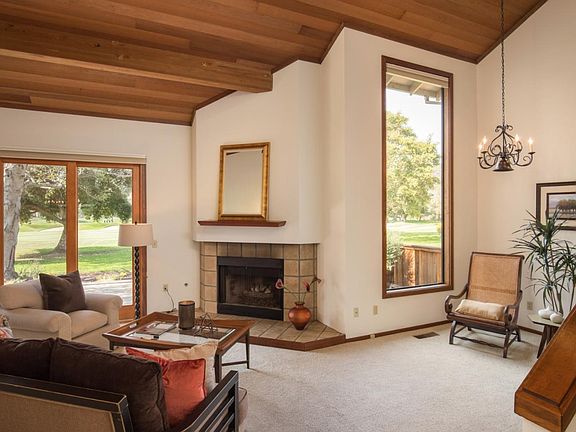 Located on the 15th Fairway of Carmel Valley Ranch golf course sits a pleasant 2 bedroom, 2 bath townhome. Bright, sunny and clean this townhome has a wonderful location overlooking the 15th fairway and beyond. The master bedroom suite is upstairs with full bath, walk-in closet and deck overlooking the front garden patio. On the main floor is the kitchen, living room/dining area and the second bedroom and bathroom. A new sliding glass door opens up to the spacious deck with views out to the west and beyond. Enjoy the amenities and lifestyle Carmel Valley Ranch has to offer from this delightful townhome. Current two car carport can be converted to a garage, per HOA guidelines, if desired and adjoining neighbor has interest!