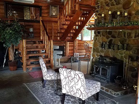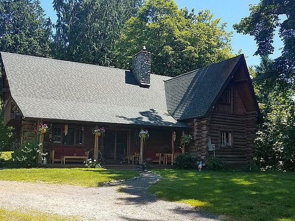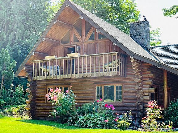 Rustic log home nestled in a private, picturesque setting on 5.41 acres. The 2 story river rock fireplace dominates the great room & is the center of attraction. Soaring ceilings & open loft areas showcase the true beauty of this home. Master suite & 2 additional bedrooms encompass the upper floor. The spacious kitchen has hickory cabinetry, eating bar & open to dining area. Private access to the Stillaguamish river that's perfect for swimming, fishing or beach combing. Peace/tranquility await.