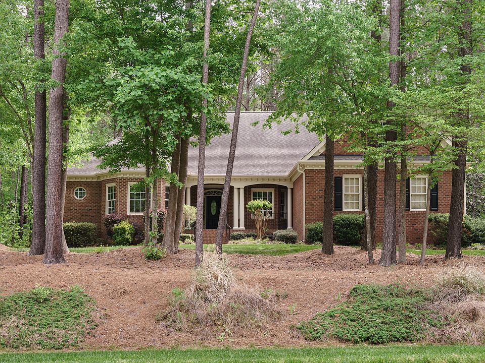 Ranch Plus living with brick front, wooded lot & pond view! Former model home boasts Kitchen with new granite, sink & faucet, flowing first floor hardwoods with inlays and extensive millwork. Master suite has double tray ceiling. Three first floor bedrooms PLUS second floor is perfect for entertaining or as a suite with 2 huge rooms, full bath, media equipment, wet bar & more. Outside boasts screened porch (with private Master access), deck & landscaped backyard on .70 acres! Community Pool and Ponds.