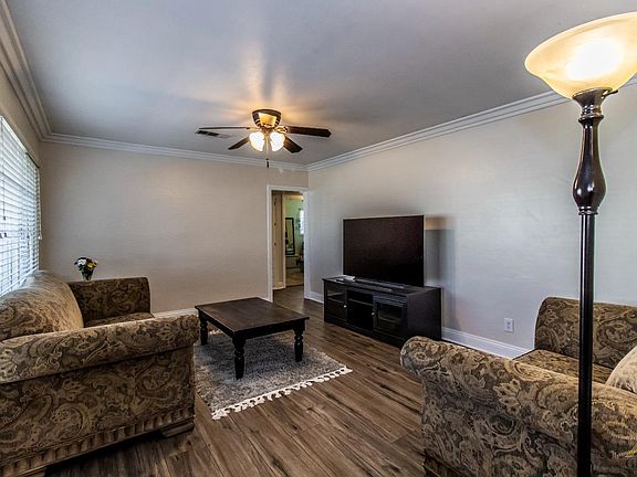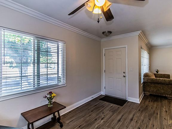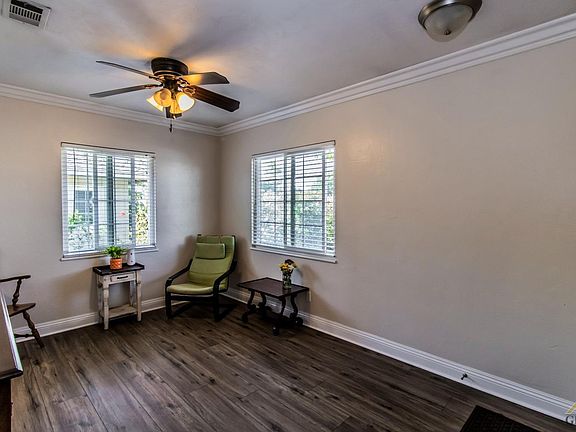 Adorable, cute, an absolute doll house describes this 3-bedroom home featuring new carpet and vinyl plank flooring, plus freshly painted interior walls. The kitchen is bright and cheery with white cabinets and wainscoting in the dining area. The garage was converted into additional living space complete with a bathroom, kitchenette, and washer dryer hookups. There is also an area in the main house for a stackable washer and dryer. The yard was just seeded and should be nice and green soon. Keep cool during the hot summer months in your newly resurfaced pool. Dual pane windows, central AC and a storage shed are extra perks. Make your appointment today to see this move in ready home!