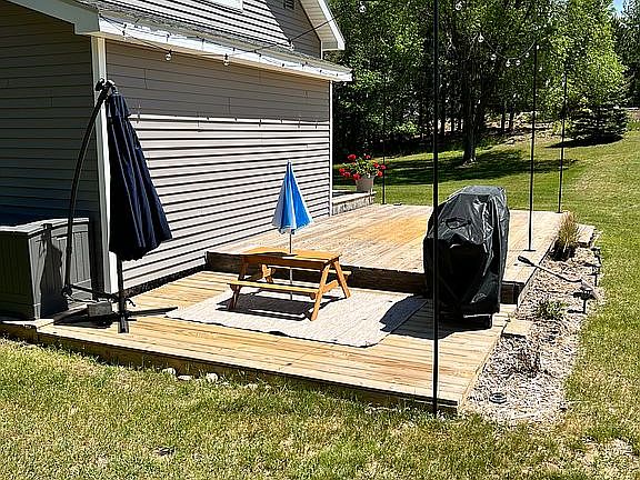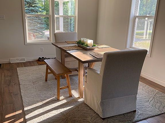 Remodeled in 2022. New additions include, furnace, AC , windows and doors, vinyl siding. Brand new kitchen and new wood flooring throughout the lower level.. Home has a full black basement